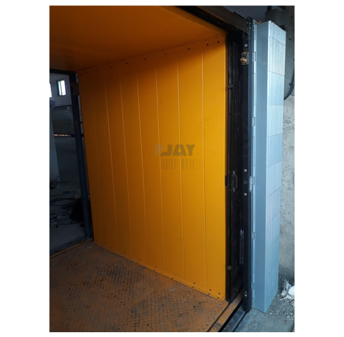 'JAY' Electric Lifting Platform (Goods Lift) are the most ideal equipment from ‘JAY’ for easy transfer of material from one floor to another, these are lifts are compact in size and can easily accommodate in any area. These lifts idle for use in mezzanine floors, factory buildings etc. It can be installed anywhere i.e inside or outside the bldg.. It can be operated from any desired floor levels. It is equipped with all safety features like door interlocking, overload protection etc. These model is also available with self supported heavy duty structure design, which will eliminate the lift shaft requirement, thereby saving heavy civil cost. Its high performance powerpack ensures trouble free operation for long working life.